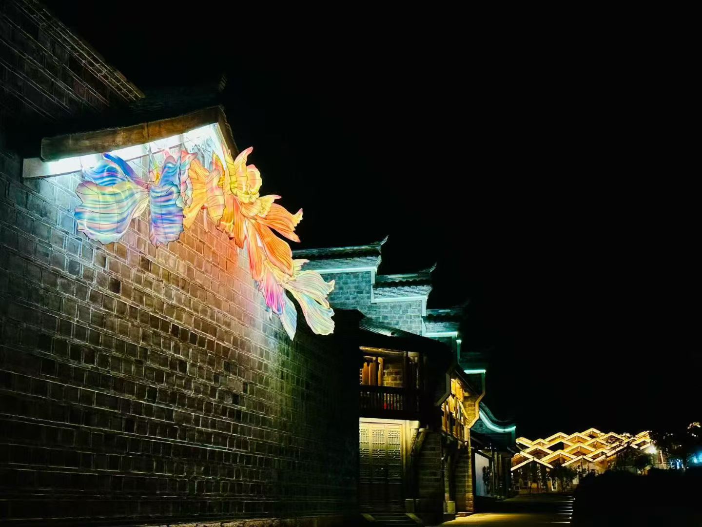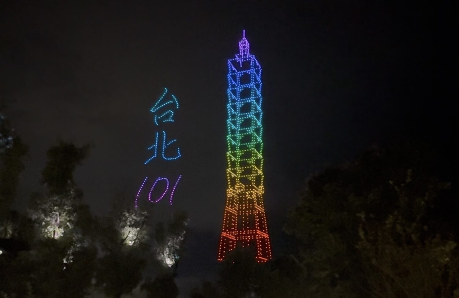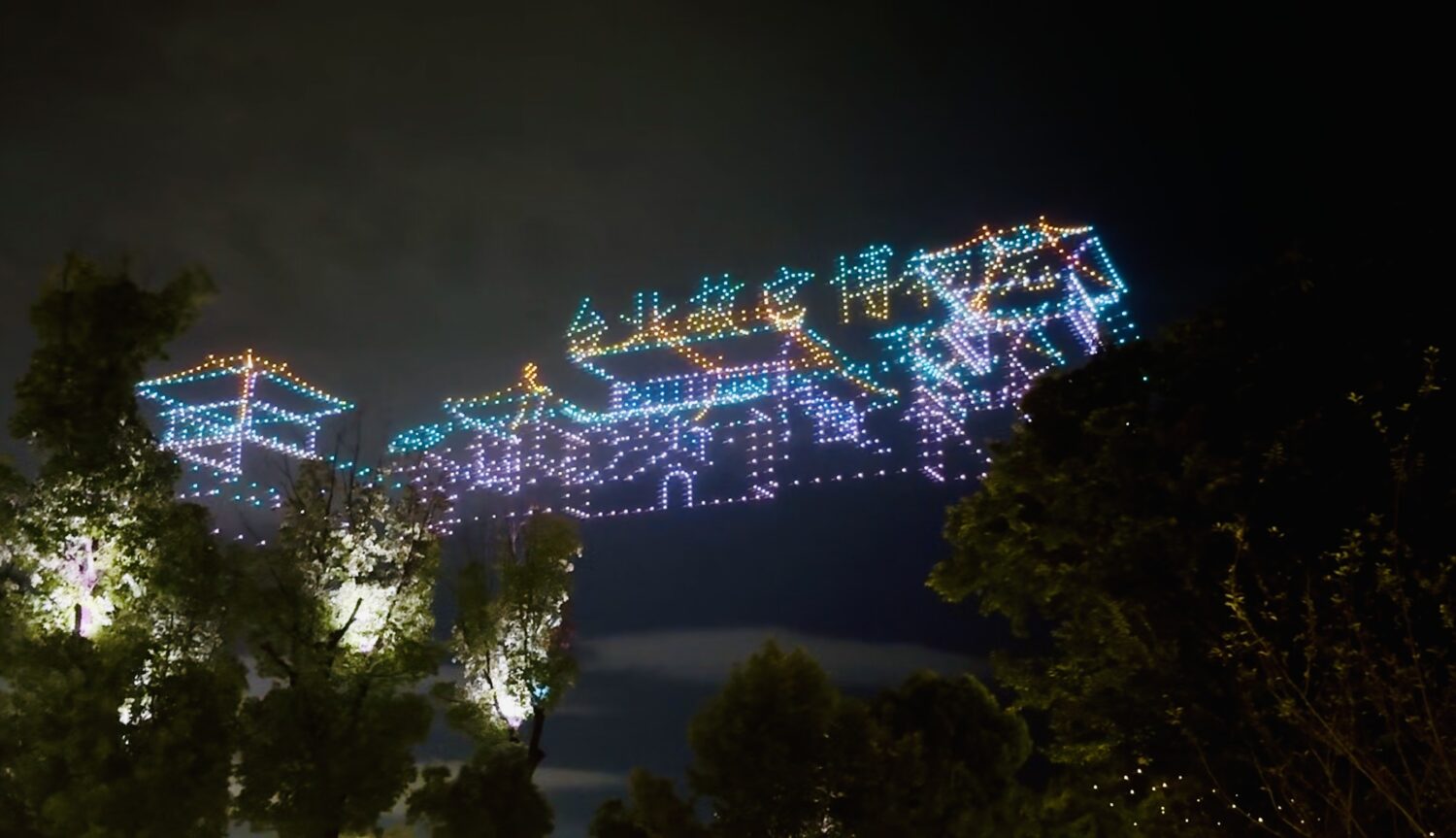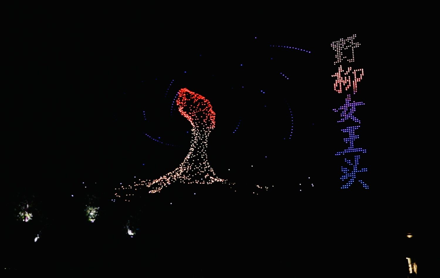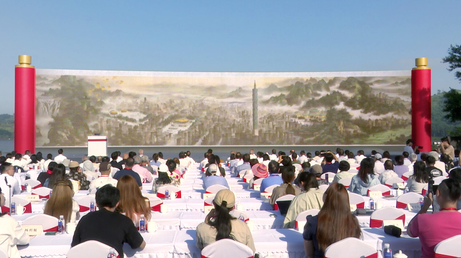 夜幕降臨,一場以巫登益代表作為靈感的大型無人機表演在長江上空璀璨呈現:野柳女王頭、台北101、國立故宮博物院、平溪天燈等一幅幅臺灣風情接連綻放於天幕。光影交織,江水共映,將人文與美學的對話推向高潮,也為開館盛典添上璀璨一筆。