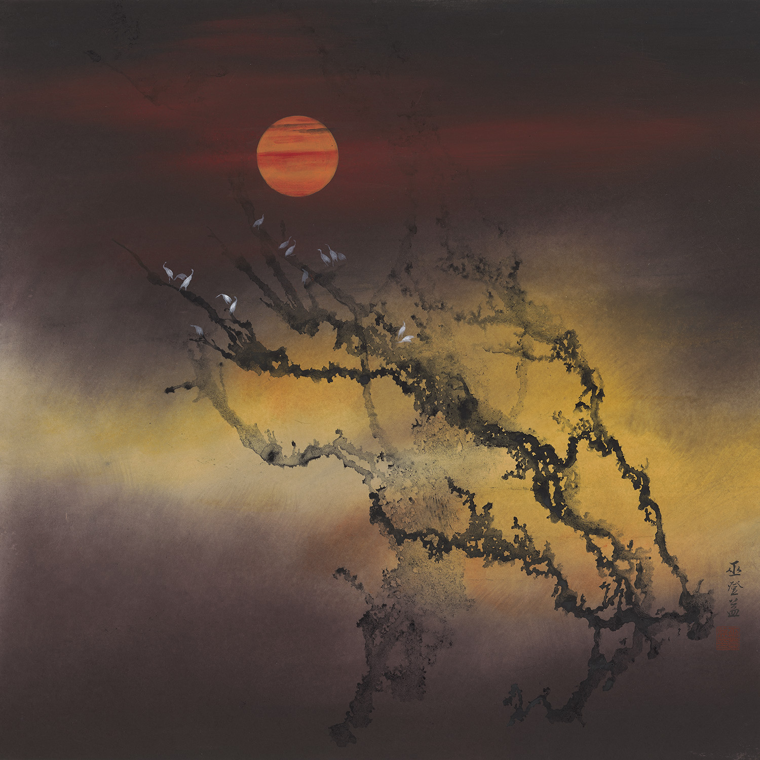 橙紅與深紫層層暈染,